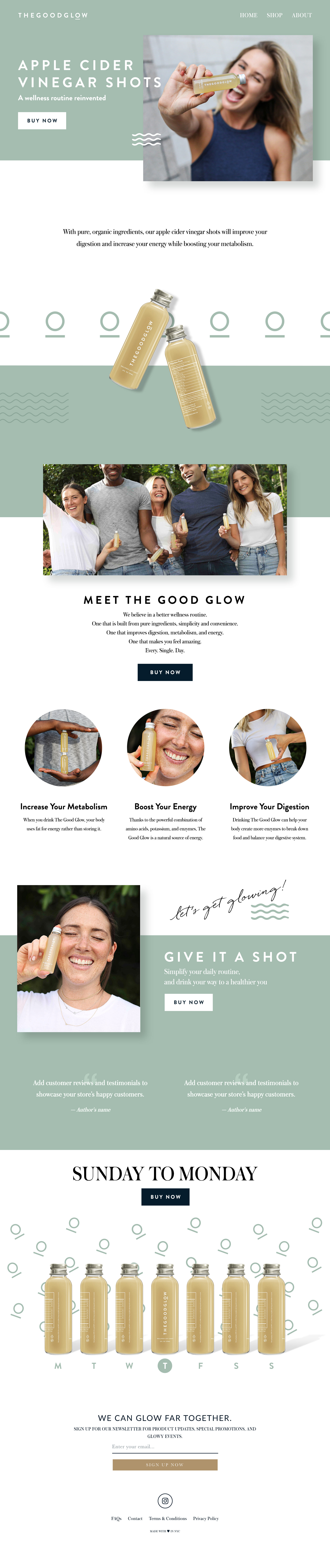 The Good Glow es una bebida orgánica que se integra en tu rutina diaria, mejorando tu digestión y brindándote la energía que necesitas. Para este proyecto se creó el UX desde cero para su tienda en línea en Shopify.